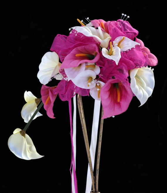 Silk Wedding Bouquet Hot Pink Lily Etsy