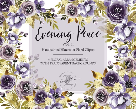 Watercolor Floral Clipart Purple Flower Arrangements Mauve Etsy