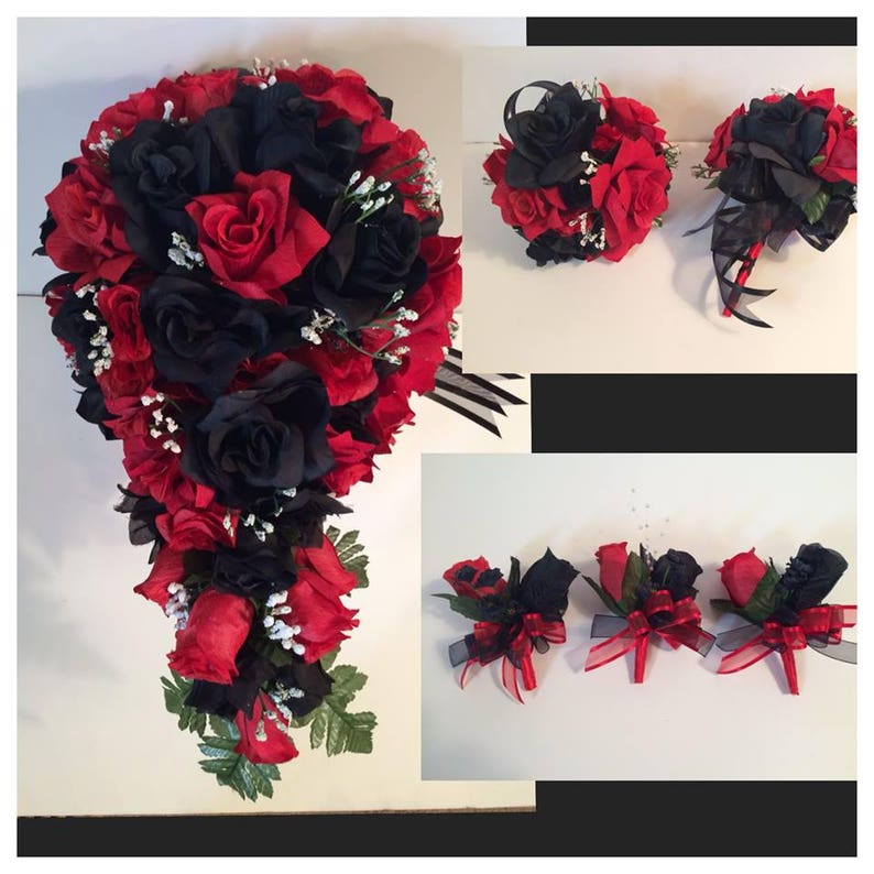 Black And Red Rose Wedding Bridal Bouuqet Set Package Silk Etsy