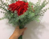 Items Similar To Rose Bouquet With Greeners 10 Tall Red Green