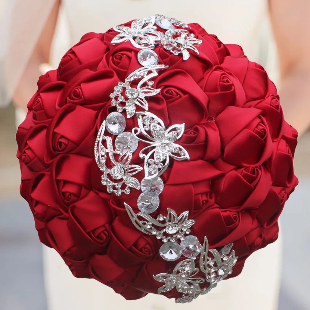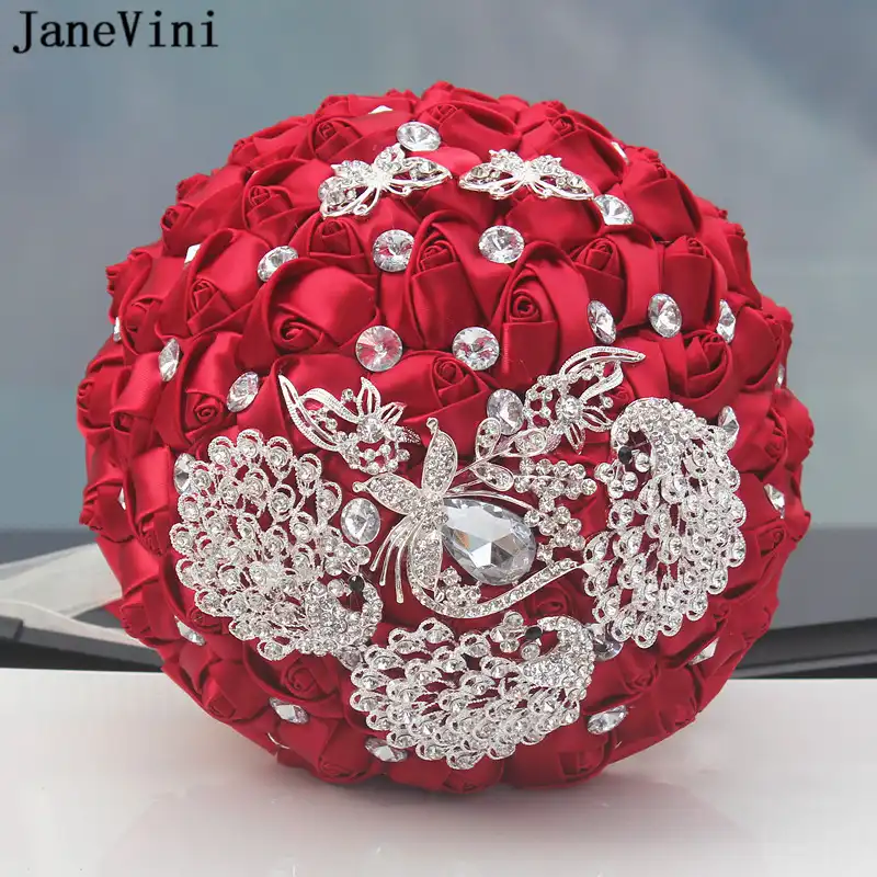 Janevini Romantic Red Satin Rose Wedding Flowers Bridal Bouquets