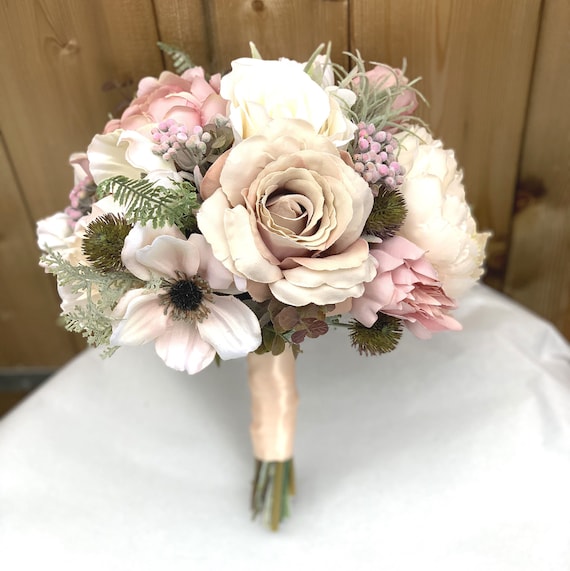 Abigail Blush Pink Rustic Artificial Bridal Bouquet Silk Etsy