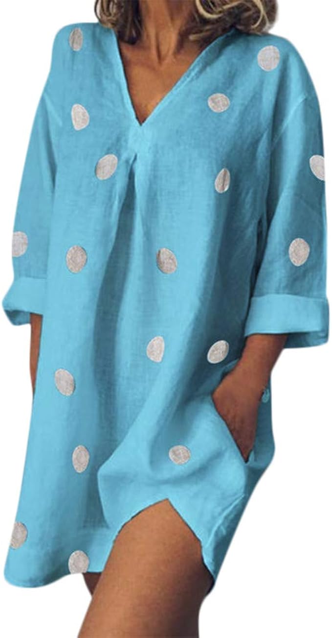Women Dresses Holiday Boho Dot Print Dresses Ladies Summer Pomisi