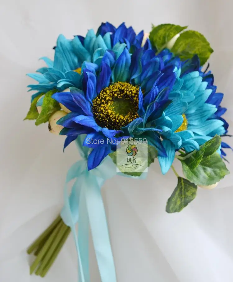 Sunflowers Wedding Bouquet Bridesmaid Bouquets Blue Cornflower