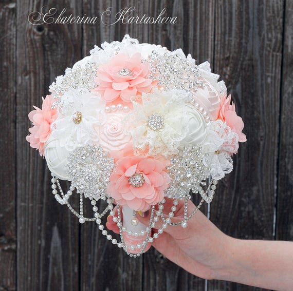 Brooch Bouquet Wedding Bouquet Unique Fabric Bouquet Peach Etsy