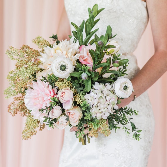Blush Pink White Bridal Bouquet Dahlia Bouquet Spring Etsy