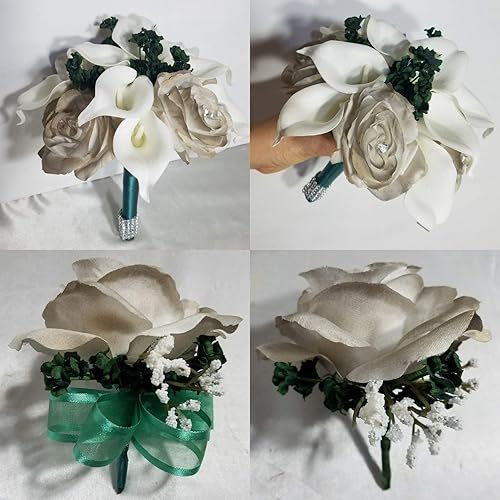 Amazon Com Champagne Hunter Green Rose Calla Lily Bridal Wedding