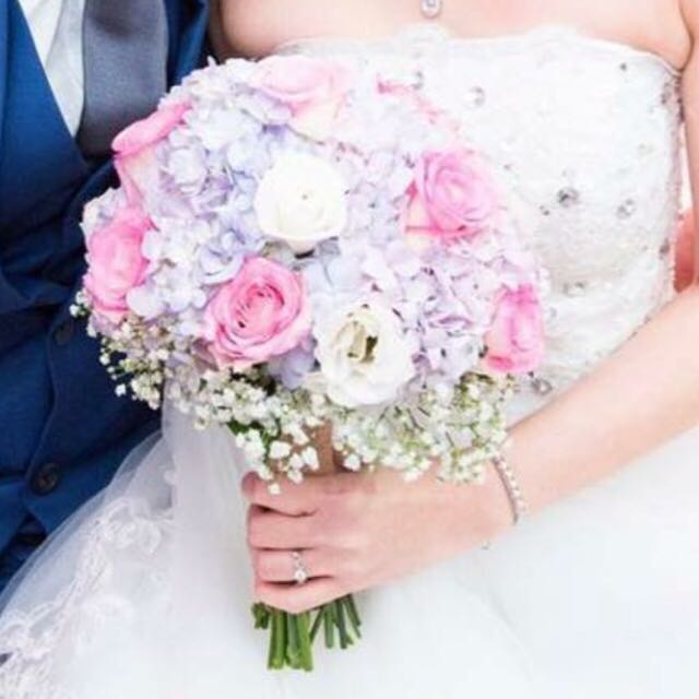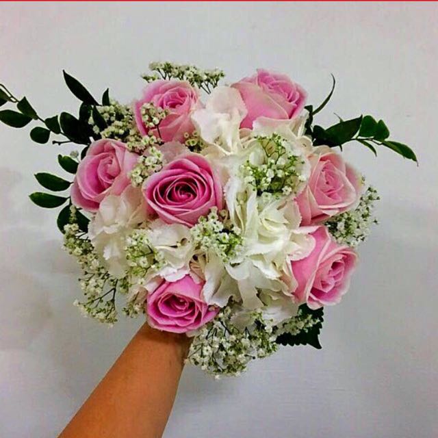 Bridal Bouquet In Hydrangeas And Roses N Baby Breath Rom Flower