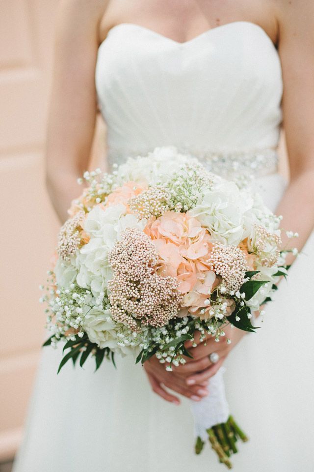 White Hydrangeas With Pink Roses And Baby Breath Classic Wedding