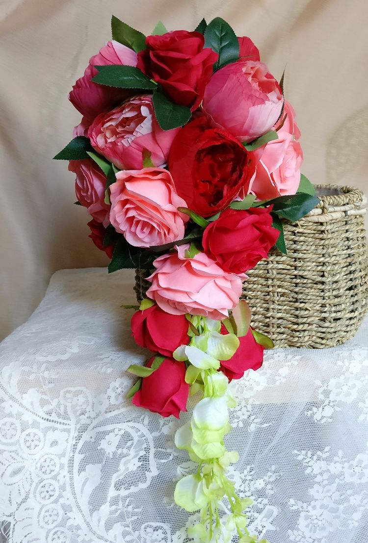 Champagne Vintage Artificial Waterfall Wedding Bouquets Red Rose