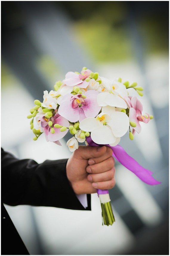 Wedding Bouquet And Boutonniere Set Clay Bouquet With Orchids Etsy