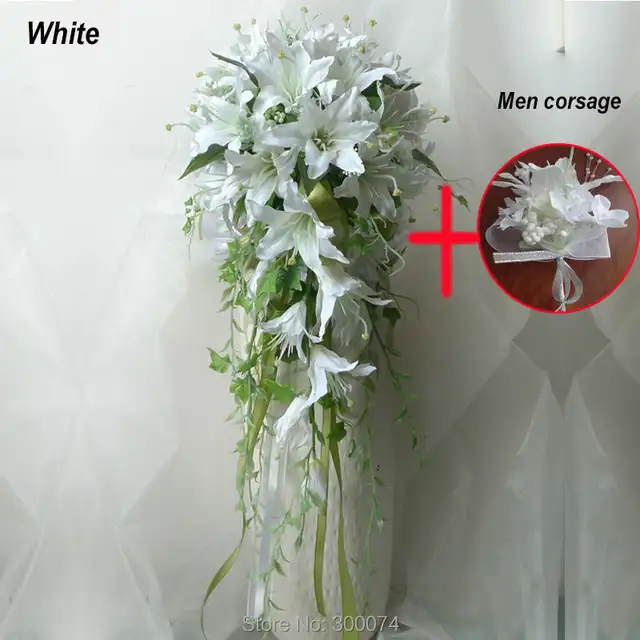 Waterfall White Lily Ivory Rose Wedding Flowers Bridal Bouquets