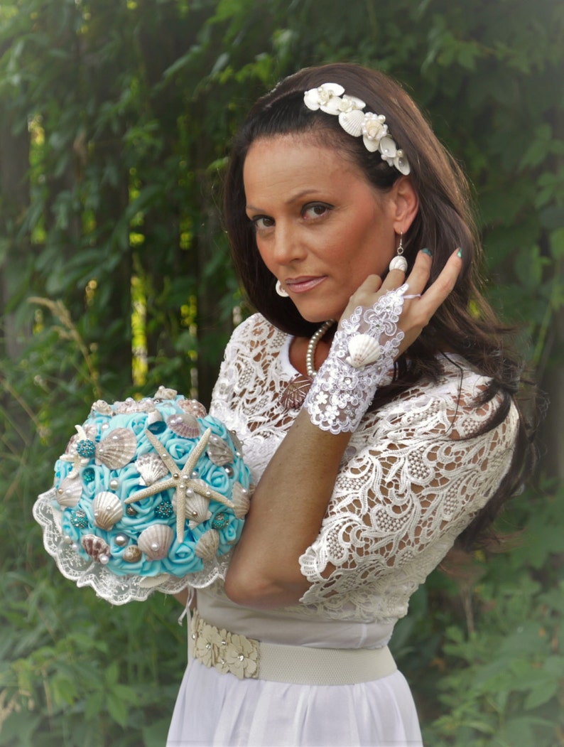 Seashell Bouquetbeach Wedding Mermaid Bouquetocean Theme Etsy