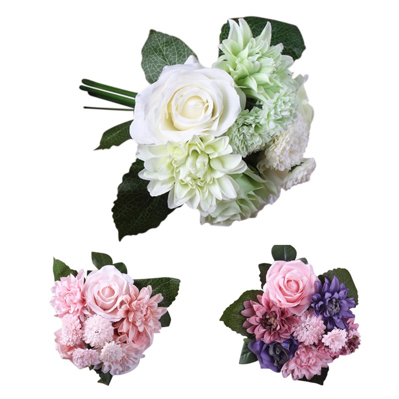 Flower Wedding Bouquet Roses Dahlias Artificial Flowers Fall Vivid