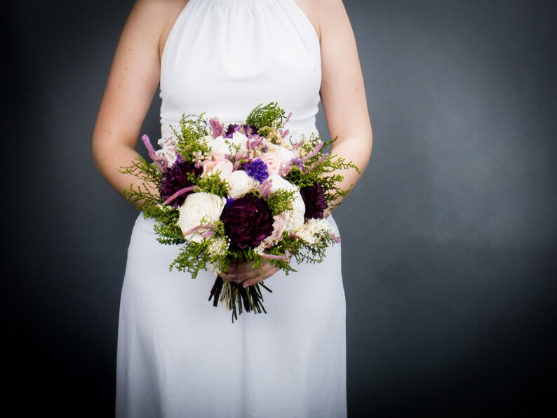 Natural Wedding Bouquet Mix Of Shades Purples Pink Greenery Etsy