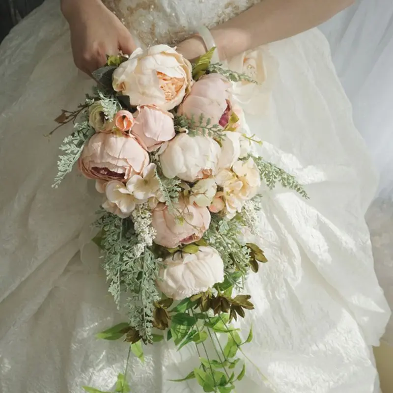 Waterfall Style Rustic Artificial Peony Bridal Bouquet Fake Plants