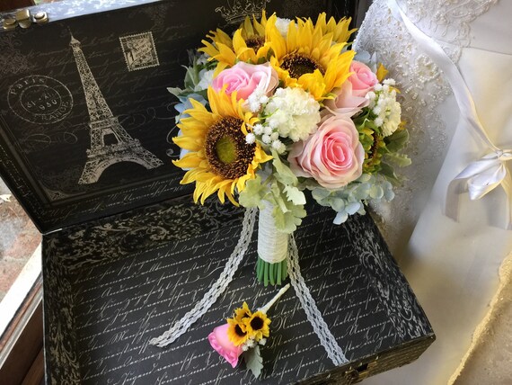 Real Touch Sunflower Wedding Bouquet With Boutonniere Etsy