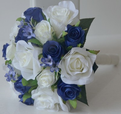 Silk Wedding Bouquet Bridesmaid Posy White Rose Blue Rose Gyp